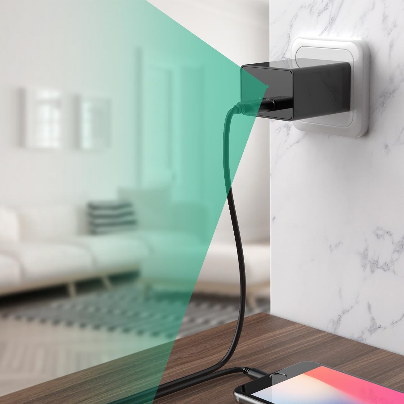 Caméra intégrée dans une prise chargeur fonctionnelle