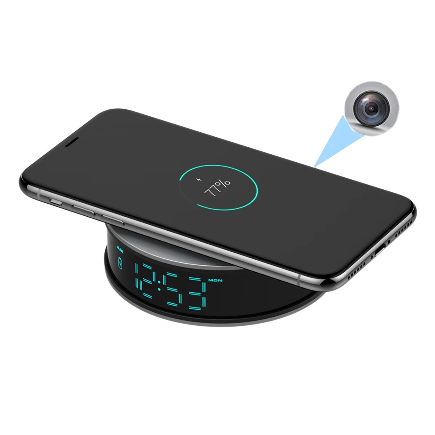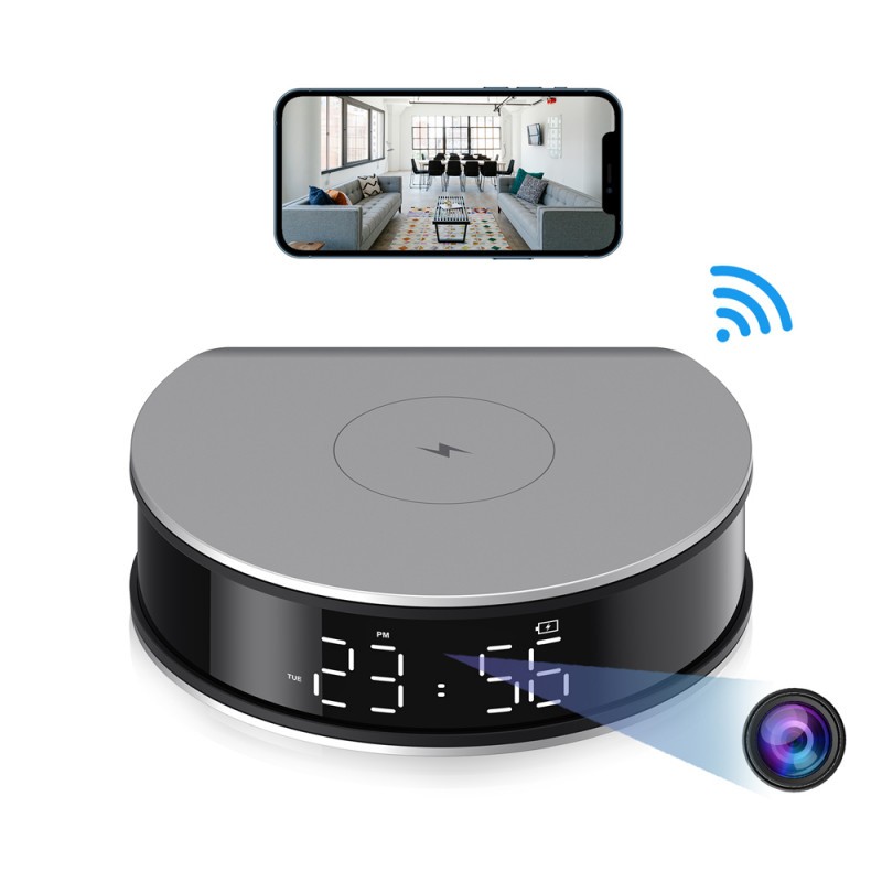 Caméra WiFi Full HD dans réveil avec chargeur à induction